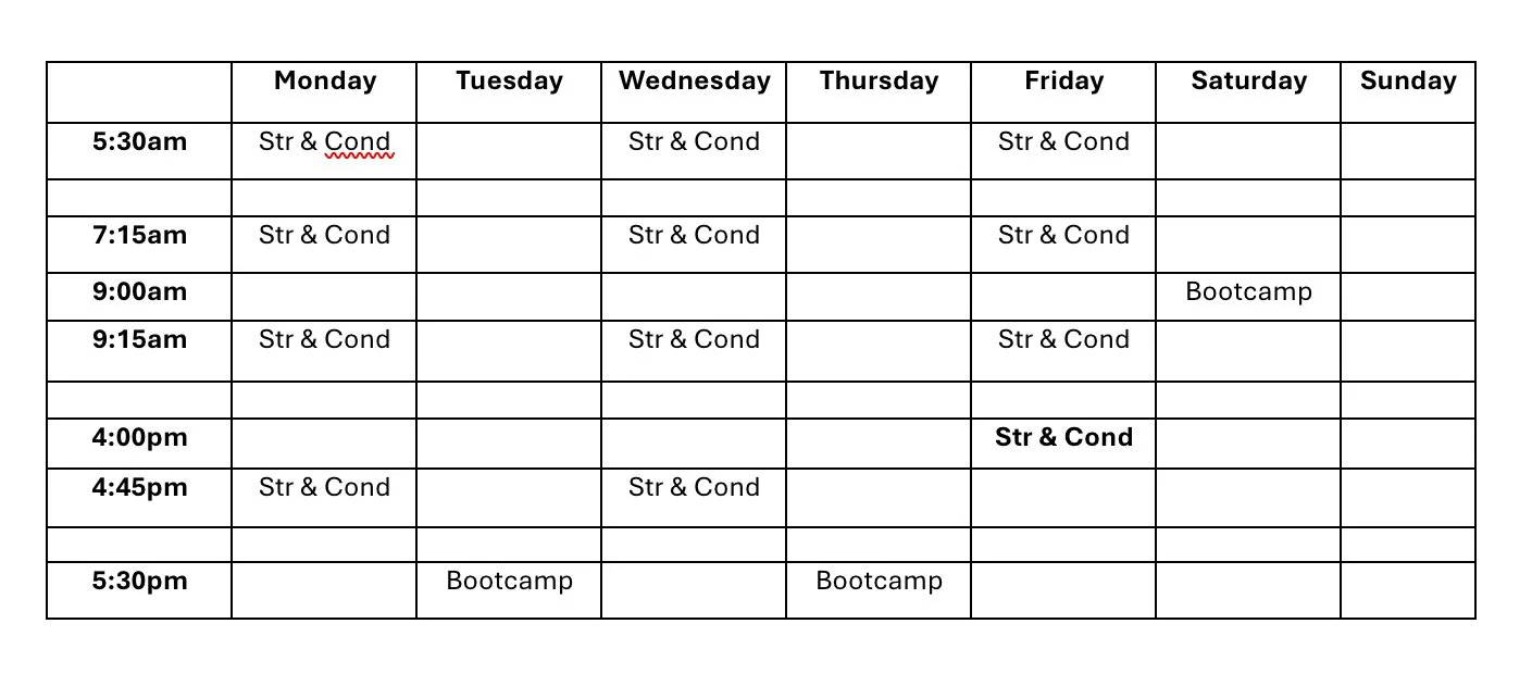 The programming is based on covering all aspects and motor systems of Strength, Power, & Endurance throughout the year.